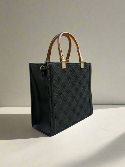 Checkered Crossbody Convertible Box Tote “Black”